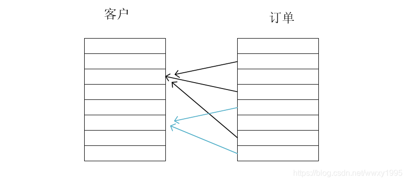 而 多条 Order记录里面的客户 是可以对应 Customer 表里面 同一个客户记录的,