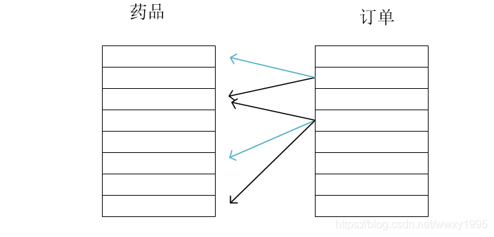 在我们的 BYSMS系统中, 一个订单可以采购多种药品,就对应 Medicine表里面的多种药品;而一种药品也可以被多个订单采购, 那么Order表 和 Medicine表 之间就形成了多对多的关系。